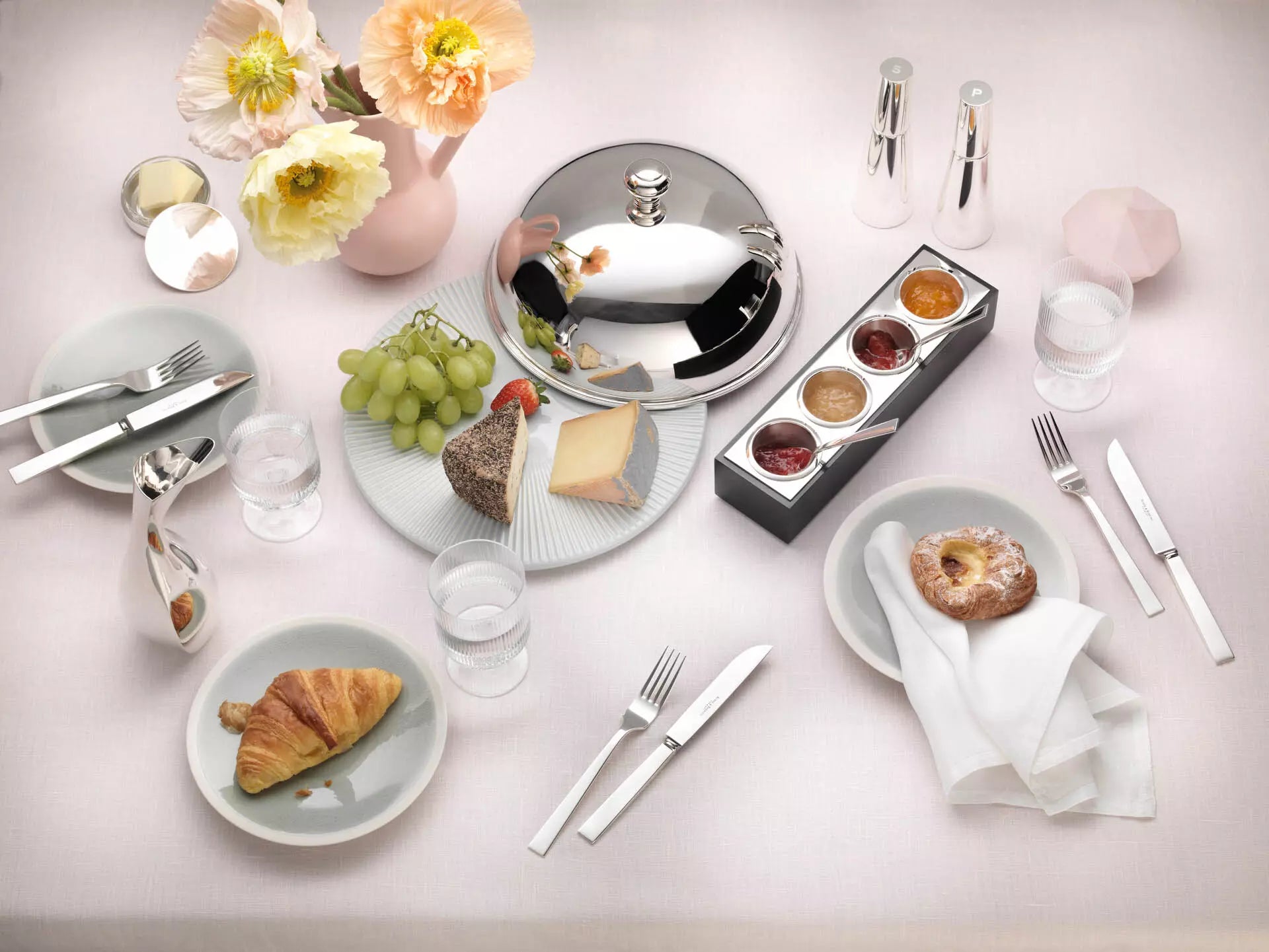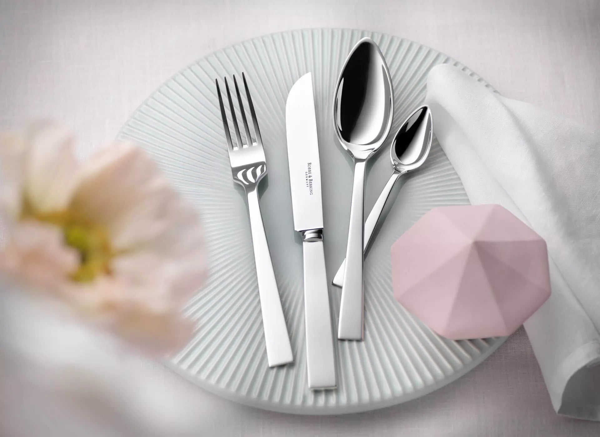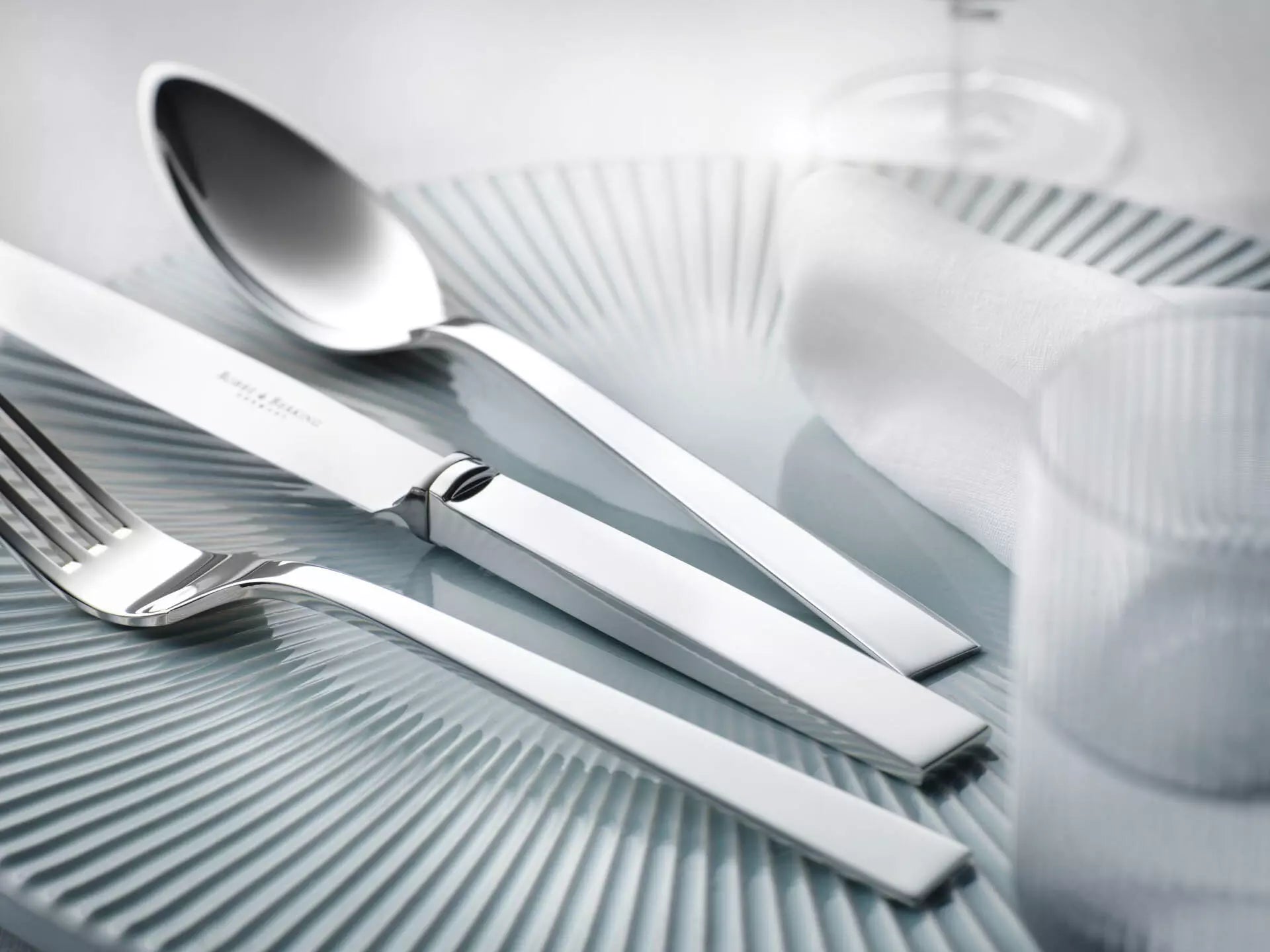 The Riva 4-piece set by Robbe & Berking includes a menu spoon, menu fork, menu knife and coffee spoon and is ideal as a basic set, allowing additional pieces of cutlery to be added to suit your personal preferences. The menu-size cutlery is more manageable than classic table cutlery and is perfect for everyday use as well as being a key feature of a celebration table.