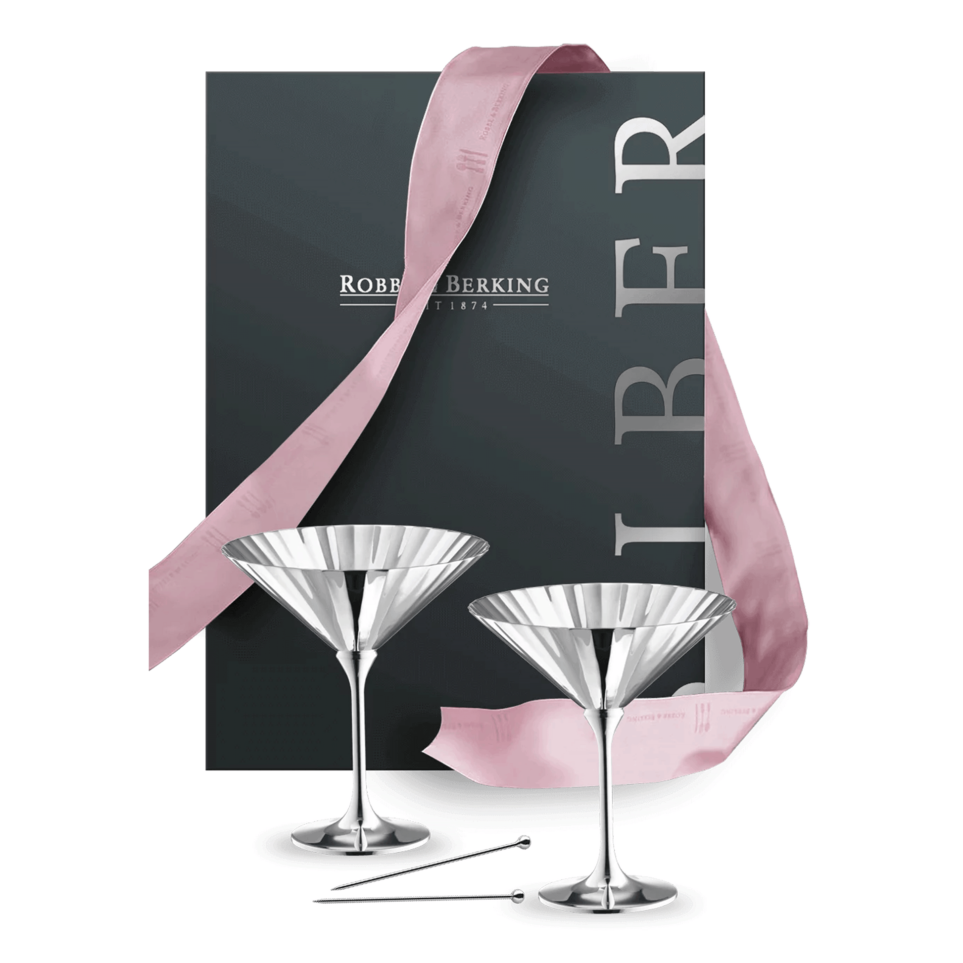 James Bond would be proud to drink his martini from this exquisite piece by Robbe & Berking: the Belvedere Cocktail coupe from Robbe & Berking fits perfectly in the hand and makes every drink look truly unforgettable. The high thermal conductivity of the silver allows the coupe to immediately adapt to the temperature of the drink, for exceptionally refreshing and long-lasting drinking pleasure. The shine of the silver reflects the sparkle and beauty of this very special drink like nothing else can. After all, it's not just food that can be a feast for the eyes. Drinks should be equally tantalising. And while it takes just one careless moment to break a crystal glass when drying it, Robbe & Berking silver-plated cups are unbreakable.