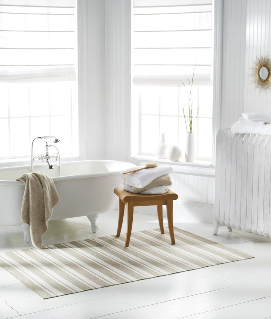Perennials’ Flatwoven artisanal rugs feature exceptional designs, subtle color blending and an unbelievably soft feel. They include binding on the horizontal edges and the selvedges are left visible to show the craftsmanship of each handwoven rug. These rugs are ideal for use indoors or out.