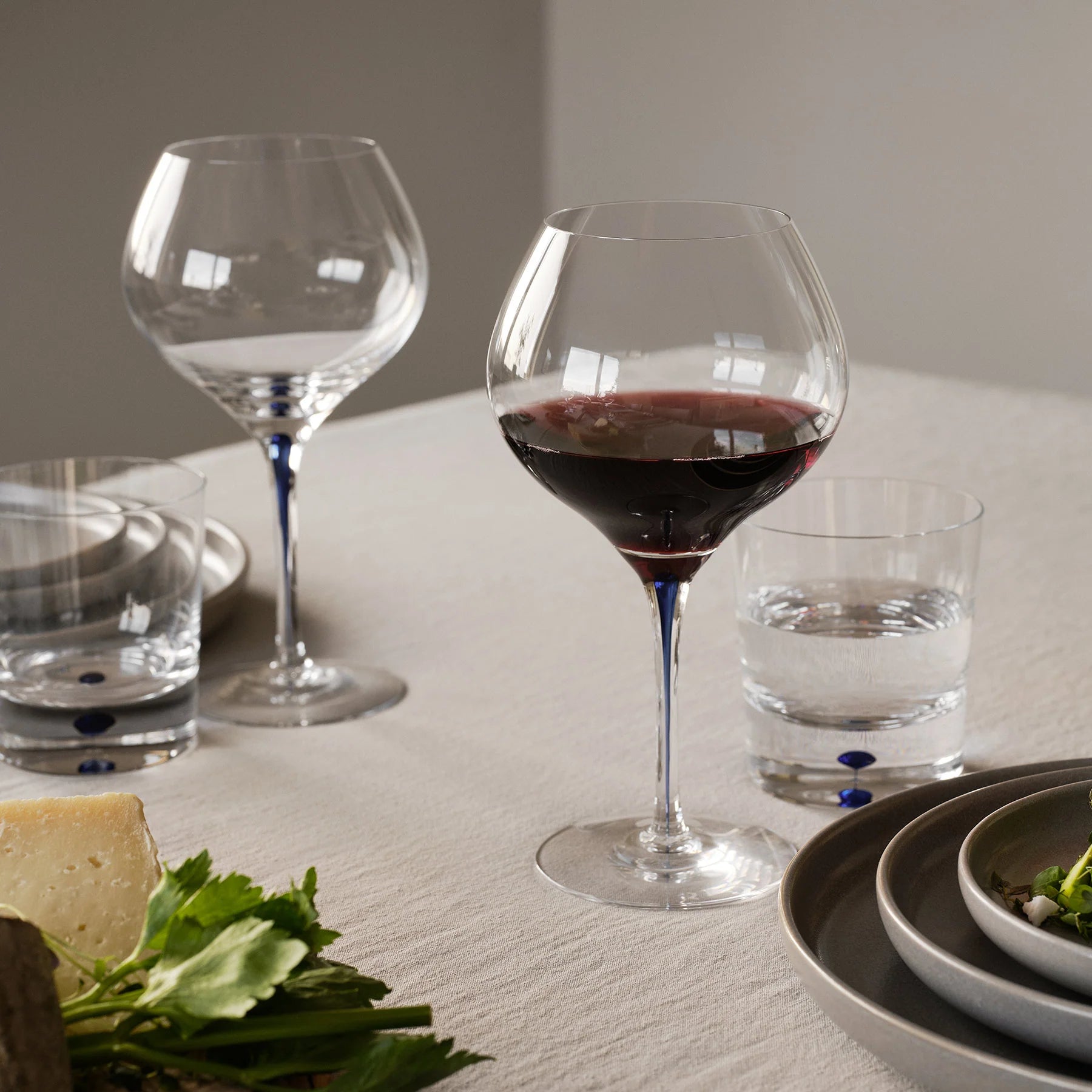 Intermezzo Double Old Fashioned from Orrefors was designed in 1984. The glass, available as a set of 2, holds 11 oz and is ideal for serving spirits or cocktails with space for plenty of ice, juices, and drink mixers. Intermezzo DOF is mouthblown in Sweden by expert glassblowers and has a drop of blue sealed in the bottom – an innovation based on traditional glass craftsmanship. Designed by Erika Lagerbielke.