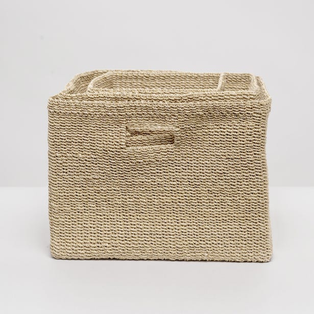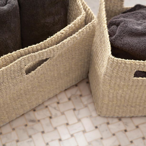 A soft structure square basket set woven from natural abaca fiber. Perfect for towels, toys or trinkets!