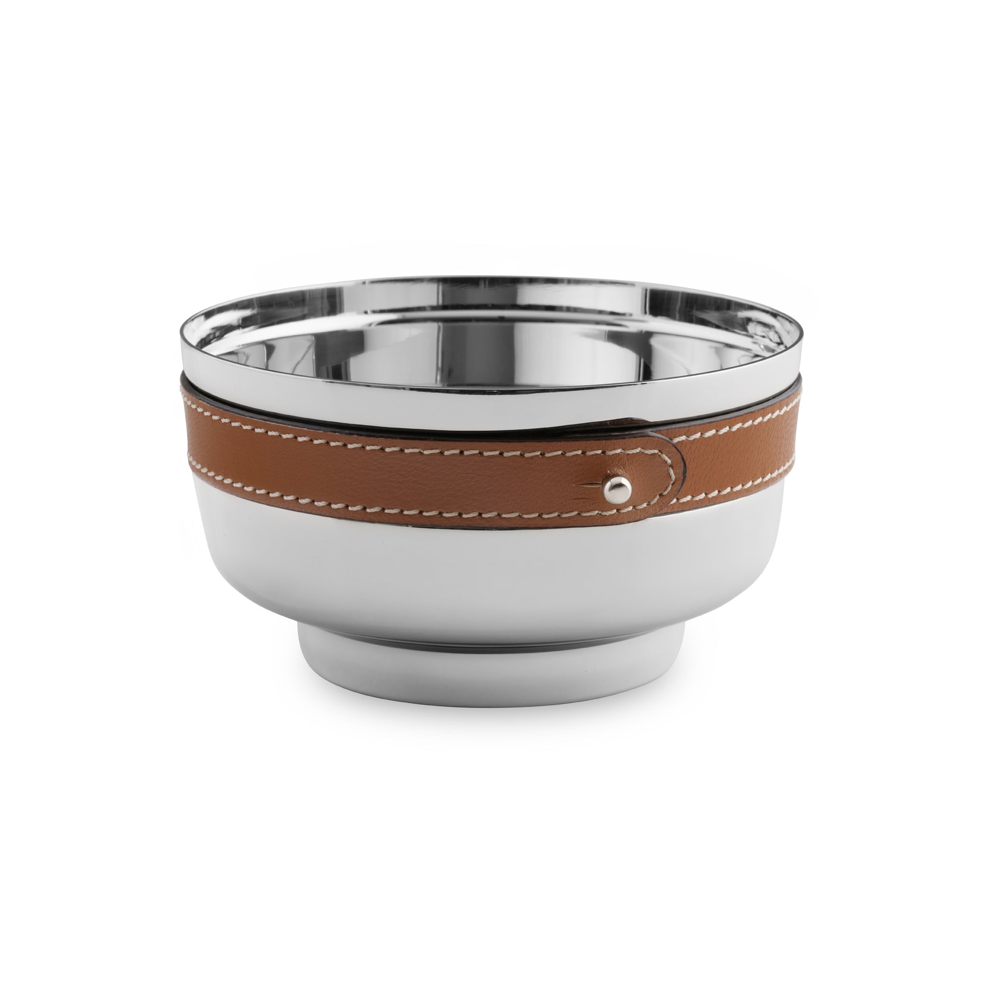 Serve, nuts, snacks and more in the Tahoe Nut Bowl, a perfect addition to your home bar and just the right size to become an entertaining must-have. The leather accent is removable for easy dishwasher clean up.